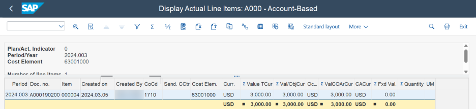 수익성 분석 값이 추출되었으나, 이 값은 Real Object 가 아닌 통계 목적이기 때문에 Object Scope = OCOST (Overhead Costs) 형태로 존재한다.