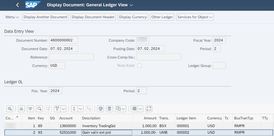 이렇게 생성된 가격차이 계정은 별도의 Material Ledger Settlement 작업을 거치지 않게 되므로, 재무제표 상 매출원가 또는 Accounts Payable 로 후속 Posting 을 진행할 수 있다.