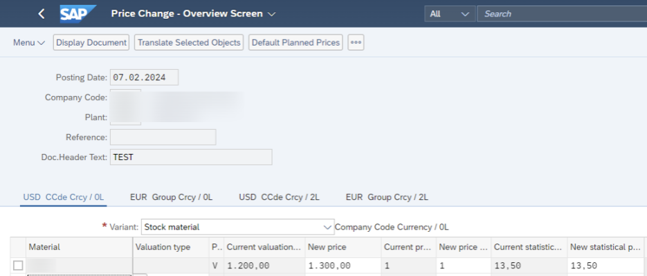 MR21 (트랜잭션) 을 통해 재고자산의 단가 정보를 변경할 수 있고, 단가 정보 변경을 통해 재고자산 금액 변경 전표가 생성될 수 있다.