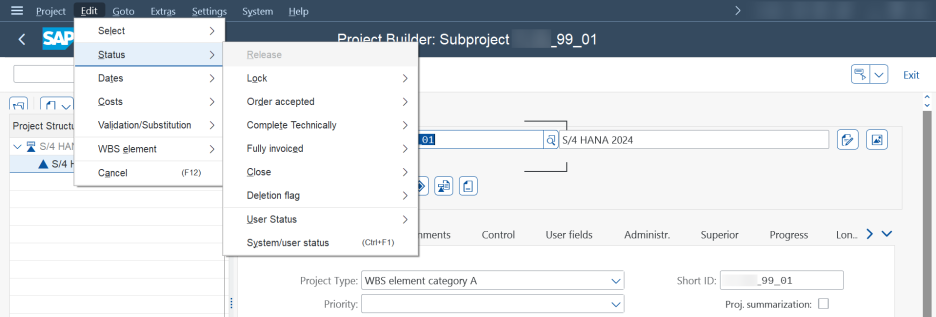 CJ20N (트랜잭션) 에서 해당 WBS 에 대한 Release 수행 후 저장하도록 하자.
