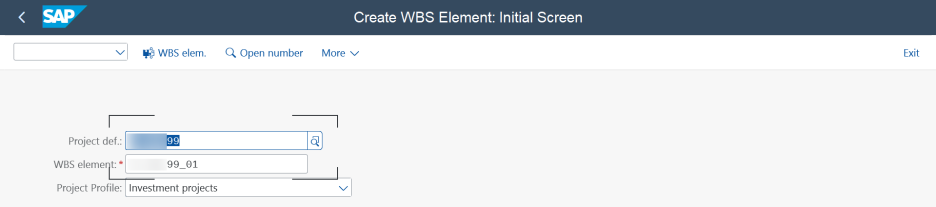 CJ01 (트랜잭션) 에서 프로젝트를 생성할 수 있다. 프로젝트는 전표에 실제로 입력되는 WBS 의 상위 개념이다.