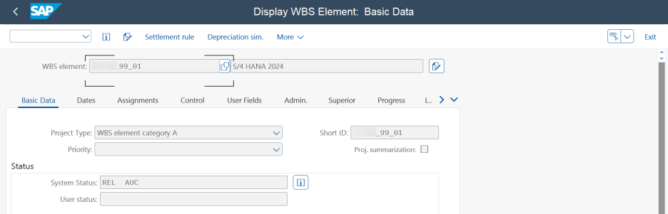 그리고 정산 완료 이후에, CJ13 (트랜잭션) 에서 WBS 의 Status 는 AUC 로 변경된 것을 확인할 수 있다.