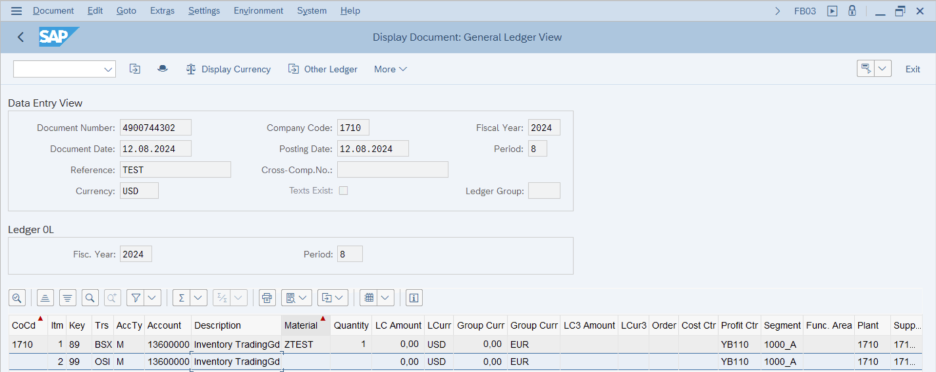 2번째 단계만 이동평균단가를 생성하기 위해 정상 구매 오더를 통해 입고 처리를 한 것이고, 이외는 501/511/101(Free) 방식으로 무상 입고 방식의 거래이다.