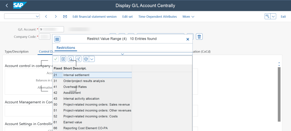 G/L Accout Type 이 Secondary Costs 로 지정된 경우가 해당한다.