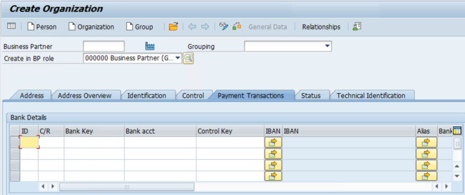 예를 들어, Business Partner 를 생성할 때 Bank Tab 에 입력하는 정보 중 하나는 은행키와 계좌번호이고 입력 시점에 은행키는 마스터로 생성이 되어 있어야 한다.