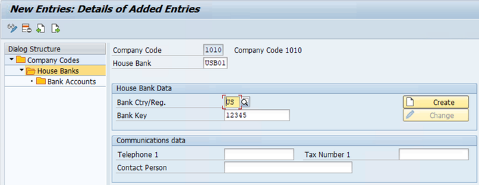 이 은행은 주거래은행 (House Bank) 이라는 이름으로 USB01 코드로 등록되어 있다.