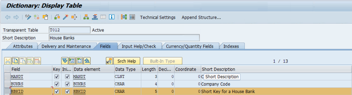 그리고 주거래은행 (House Bank) 는5자리 CHAR 자리로 제한이되니 영문+숫자 혼용하여 Key Data 관리가 필요하다.