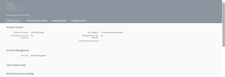 G/L Account 속성 중 회사코드에 종속되는 Dependent View 에서 관리되는 주요 속성