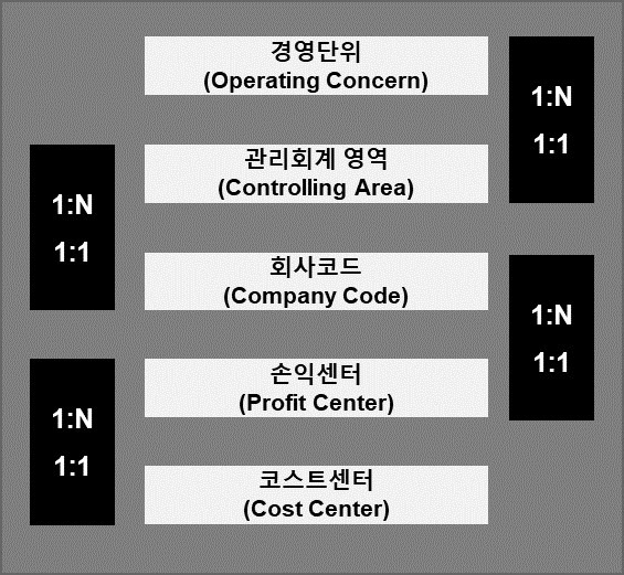 경영단위는 하위에 관리회계 영역과 1:1 또는 1:N 으로 Assign 되는 구조이다.
