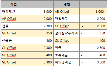 BS 계정의 상대계정은 Offset 계정을 사용하여 마이그레이션 전표를 생성한다.